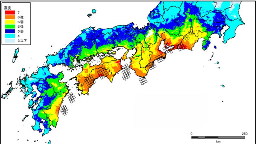 ・揺れは、震度6弱以上が神奈川県から鹿児島県にかけての24府県600市町村、震度7が静岡県から宮崎県にかけての10県149市町村