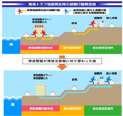 “巨大地震警戒”(最も重い)、“巨大地震注意”で事前避難、ただしその前に避難も